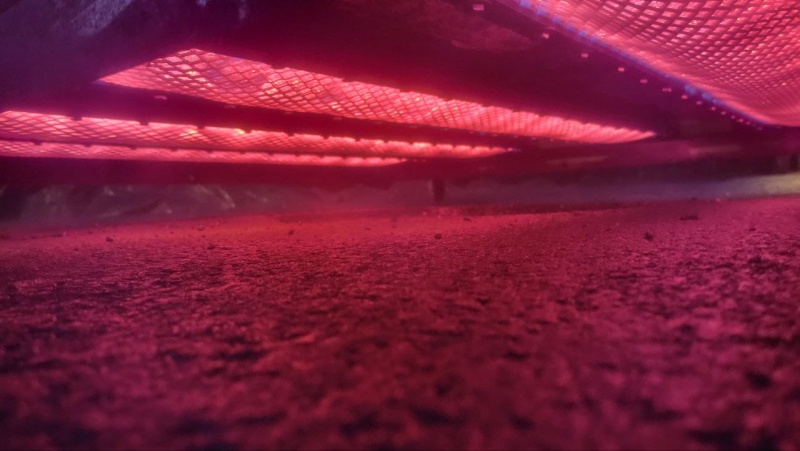 Разогретый до 800-900°С металлический экран излучает инфракрасные лучи. Конструкция металлического экрана, предотвращает появление открытого горения, делая горелку максимально пожаробезопасной. Контроль горения осуществляется редуктором и запорными кранами. Конструкция горелки обеспечивает надежность и безопасность всей установки при эксплуатации в течении расчетного ресурса работы, а также возможность ремонта или замены отдельных блоков.